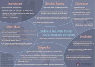 Throughout their programme, the PhD students face a number of tasks, some individual, as a pair or in a group. Where possible, we will feature these pieces below. Posters - February 2022 Working in three teams, the students pulled together posters looking at aspects of later life. Infographics - November 2021 Working in two teams, the students created infographics looking at the nature of their study. Team 1 Team 2 Posters - Summer 2022 Over the summer, students undertook research projects related to their field of study and presented their research to a variety of academics and university staff. Emily Adams Lara Johnson This article was published on 2024-09-24